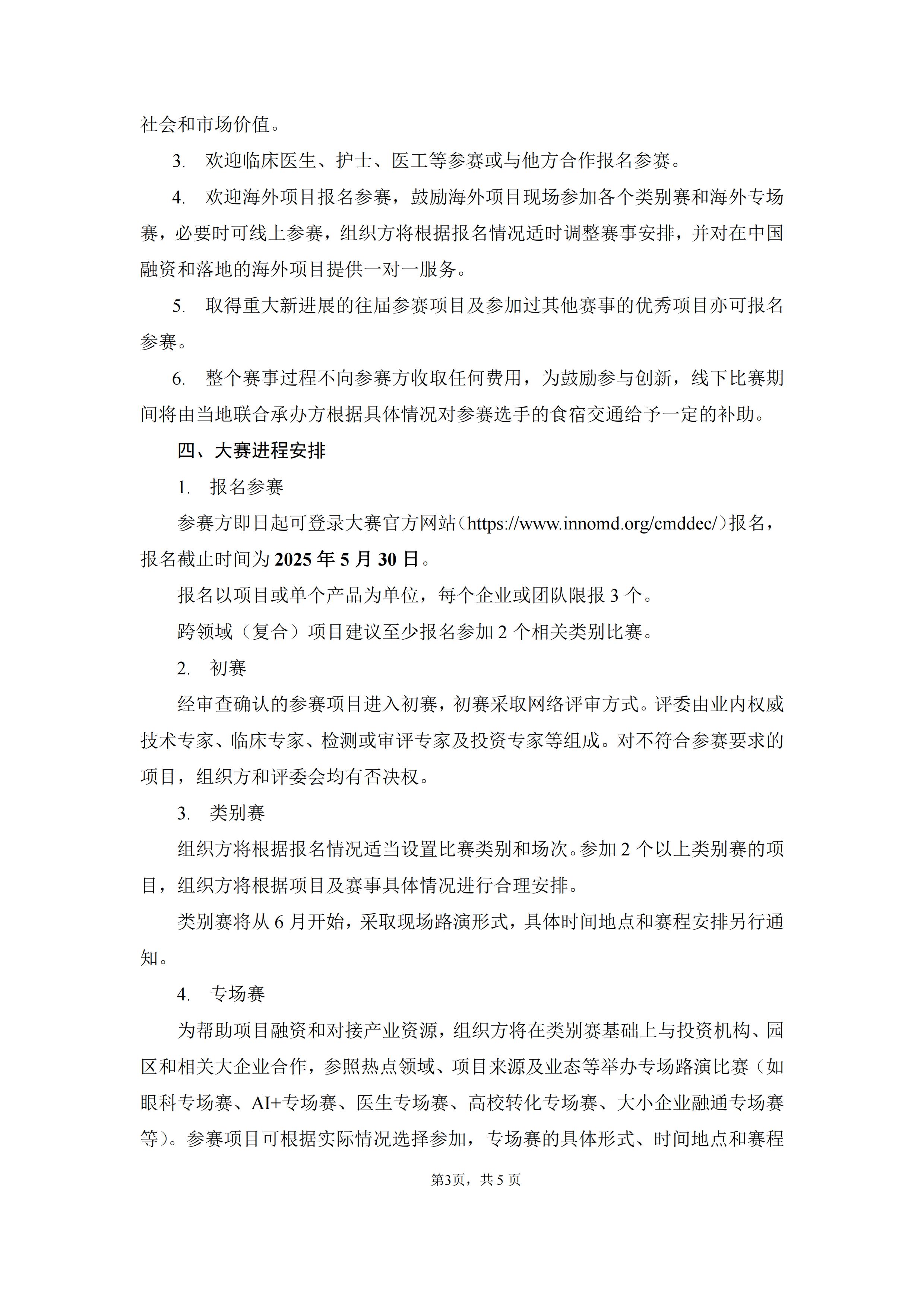 参赛方即日起可登录大赛官方网站(医疗器械创新网网://miaomuhaozhao114.com/cmddec/)报名,报名截止时间为2025年5月30日。